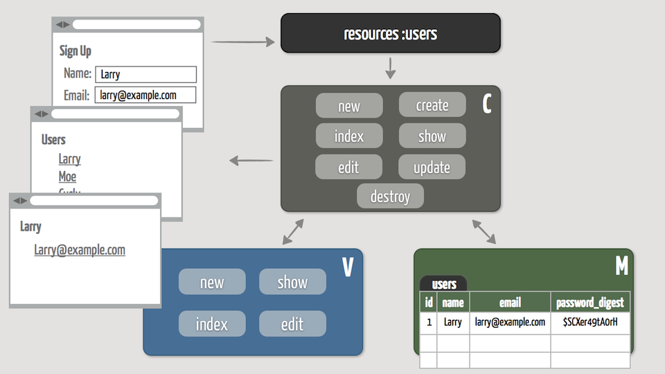 Nicely done! Folks are now able to create user accounts complete with super-secret passwords. Working incrementally through the process of designing a web interface for managing user accounts allowed us to review the following Rails fundamentals:
